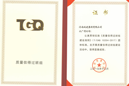 集團(tuán)水廠項目部榮獲中國質(zhì)量協(xié)會“質(zhì)量信得過班組”