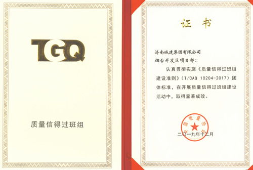 集團(tuán)煙臺(tái)開(kāi)發(fā)區(qū)項(xiàng)目部榮獲中國(guó)質(zhì)量協(xié)會(huì)“質(zhì)量信得過(guò)班組”