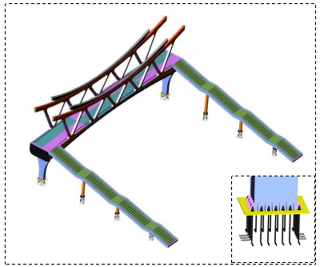 印象濟(jì)南·泉世界作為濟(jì)南西部重要的文旅商業(yè)綜合體,長(zhǎng)期面臨人車交織的通行壓力與安全隱患。本次建設(shè)的天橋全長(zhǎng)47.3米,橋面寬5米,以“雄鷹展翅”為造型,將橋體結(jié)構(gòu)、材質(zhì)、色彩進(jìn)行巧妙融合,實(shí)現(xiàn)人車分流、保障通行安全,成為串聯(lián)不同風(fēng)貌街區(qū)的景觀紐帶。該項(xiàng)目直面商圈出行痛點(diǎn),選址于人流密集區(qū)域,南北雙側(cè)配備梯道與垂直電梯,全面貫徹全齡友好、無(wú)障礙通行理念,全力打造一座讓市民安心、讓城市暖心的“連心橋”。