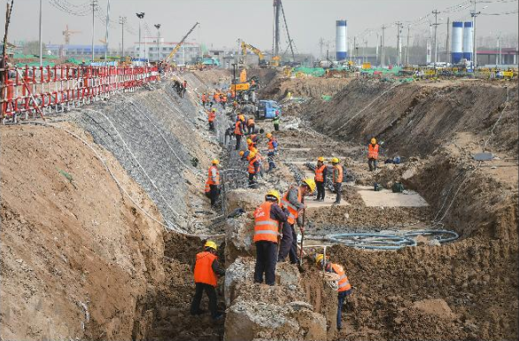 進(jìn)入城建集團(tuán)施工范圍的黃河大道施工現(xiàn)場(chǎng),鉆機(jī)林立、機(jī)械轟鳴,處處展現(xiàn)如火如荼的建設(shè)場(chǎng)景。